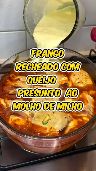 #frango recheado com queijo 🧀 e presunto ao molho de milho 🌽 #