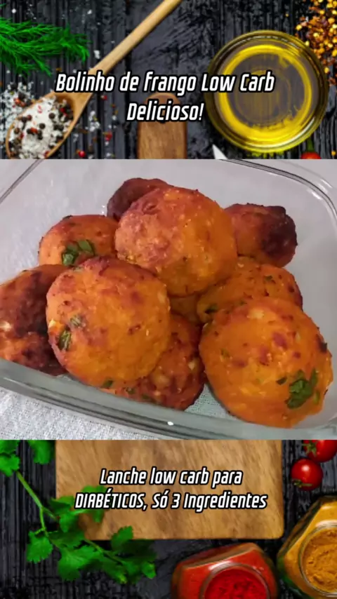 🧑🍳LANCHE LOW CARB para DIABÉTICOS, Só 3 Ingredientes / Bolinho de frango Low Carb Delicioso! #maisviews #ComidaDiária #receitasaudavel #lowcarb #bolinho