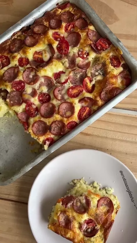 Torta salgada é delícia demaisss 3 ovos 1/2 xícara de óleo 1 xícara de leite 1 colher (sobremesa) de sal 2 xícaras de farinha 1 colher (sopa) cheia de fermento Temperinho verde (opcional) Recheio à gosto Usei 200g de mussarela ralada 1 linguiça calabresa defumada Tomate cereja Orégano Xícara de 240ml Forma tem uns 35cm de comprimento por 20cm de largura. Forno pré aquecido à 180g. Até estar douradinho na borda. Faça o teste. Um furinho com a faca na massa, se sair sequinha está pronto.