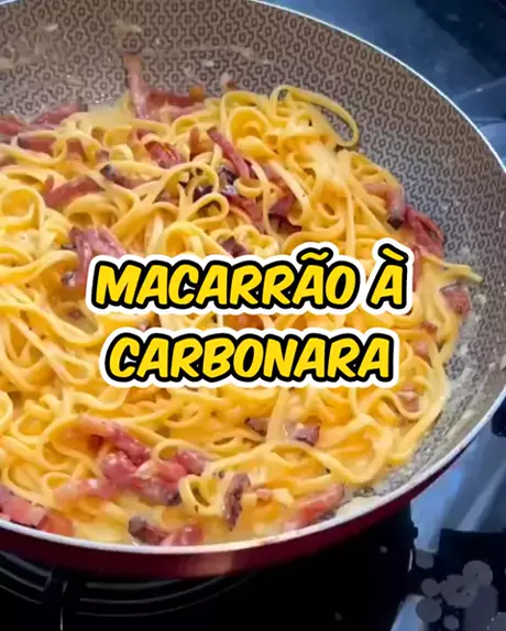 Macarrão à Carbonara 🍝 - 300g de macarrão - 300g de bacon - 3 gemas - 100g de queijo parmesão ralado - Pimenta do reino a gosto #receitascaseiras #copadobrasil #sejacriador #macarrão #kwainobbb