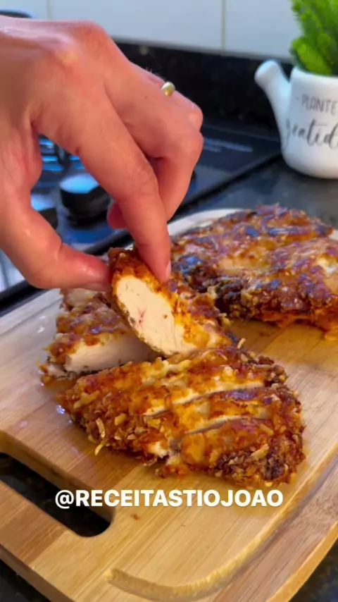 Peito de Frango Diferentão Ingredientes: Peito de frango 3 colheres cheia de maionese Raspas de limão 1/2 limão espremido Pão duro 30g parmesão - Modo de preparo: Primeiro vou amaciar o peito, reserve. Na tigela coloque a maionese, limão e raspas e os temperos. Depois pegue o pão velho e rale, acrescente o parmesão. Pegue o peito passe na maionese e depois passe no pão ralado. Leve para fritar no óleo baixo! Então está pronto o peito de frango crocante! repost receitastiojoao #receitas #frango
