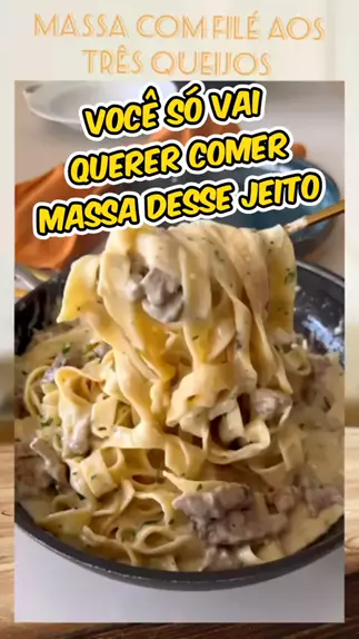 Massa com filé aos três queijos #massa #macarrão #Receita #Salgado #queijo