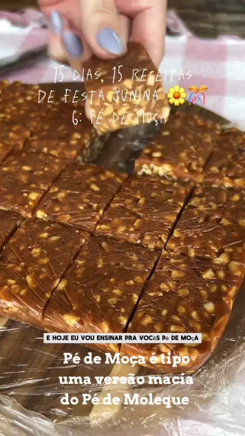 #Comidadiária #Kwaifood #receita de Pé de Moça essa receita é tipo uma versão macia do famoso Pé de Moleque...muito fácil e rápido de fazer e depois você pode variar o corte deles...bora lá pessoal fazer