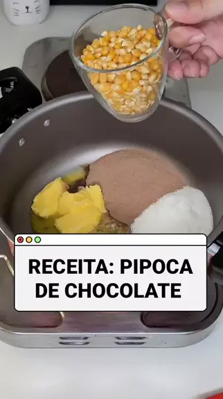 PIPOCA DE CHOCOLATE - INGREDIENTES: 1 XÍCARA DE MILHO PARA PIPOCA - 2 COLHERES DE MANTEIGA - 2 COLHERES DE ACHOCOLATADO - 1 COLHERES DE AÇÚCAR #ClimaNatalino #VidenteDoKwai #food #Receita #viral