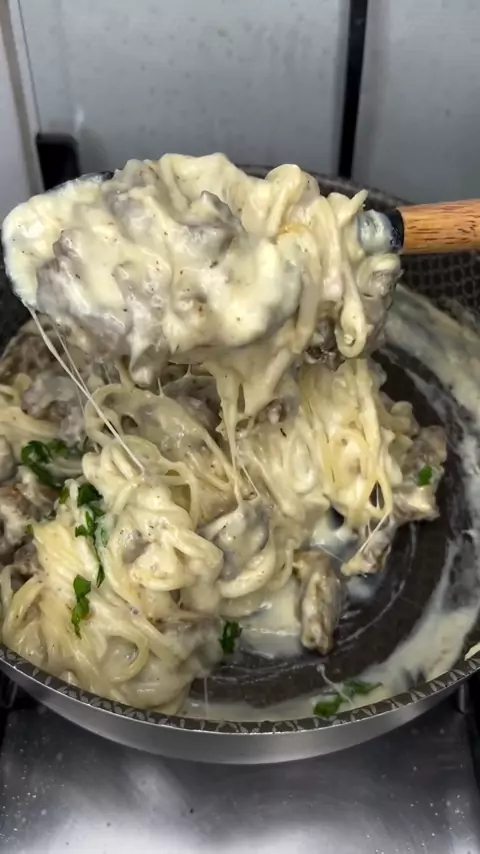 Macarrão ao molho branco com tiras de carne! 😋😋 #macarrao #molhobranco #carnes #receitas #viral