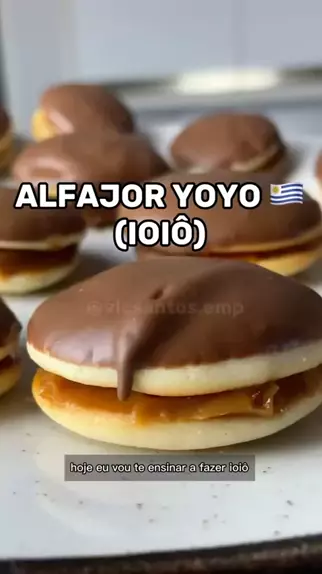 Alfajor Yoyo 🇺🇾 Ingredientes: 100g manteiga, 1/2 xicara de açúcar, 1 colherzinha de baunilha, 1 ovo, 1 colher de sobremesa de mel, 1/2 xicara de leite, 1 e 1/2 xicara de farinha de trigo, 2 colheres de sopa de amido de milho, 1 colher de aobremsa de fermento quimico. Doce de leite e chocolate cobertura. #alfajor #alfajores #receitagostosa
