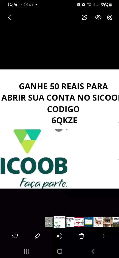 Oi, estou te convidando para o Sicoob, o maior sistema cooperativista do Brasil. Abra sua conta no App Sicoob e associe-se usando meu código de indicação 6QKZE Ganhe 50 reais para abrir a sua conta não precisa investir nada. https://app-pessoal.sicoobnet.com.br/inicioMobile/facaparte?codigo=6QKZE&nome=Reichard