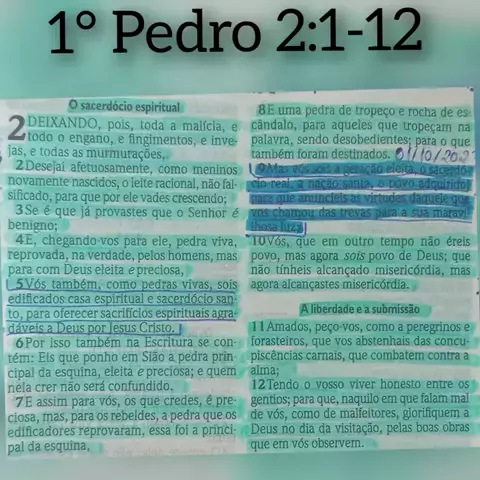 Palavra de hoje,1° Pedro Capítulo 2 Completo,Capítulo 3 Versículos 1-17 e Capítulo 4 Versículos 7-19.
