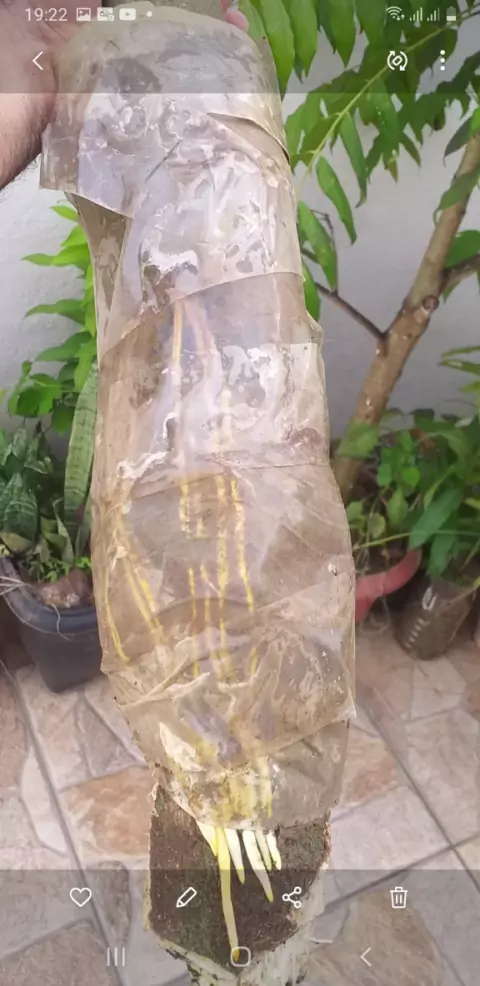 Alporquia de jaca. Galho grosso. Essa foi removida com 4 meses.