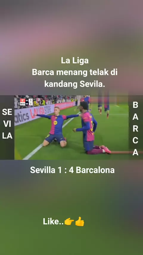 #Laliga #Jornada23 Sevilla vs Barcalona skor 1 : 4 #villabarca