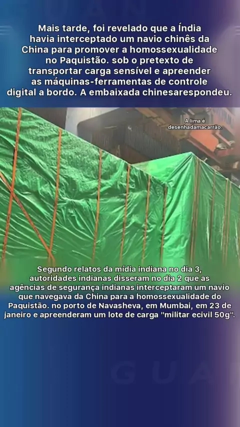 Depois, foi revelado que a Índia havia interceptado um navio da China para investigar a homossexualidade. Stein, Paquistão, sob o pretexto de transportar carga sensível e apreender máquinas-ferramentas de controle digital a bordo. A embaixada chinesa respondeu.
