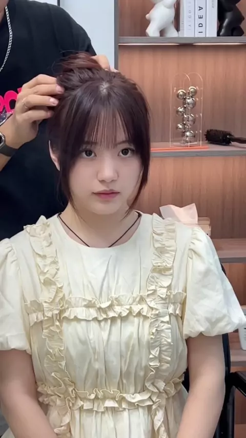 Rosto redondo e rosto em forma de pêra são adequados para franja.