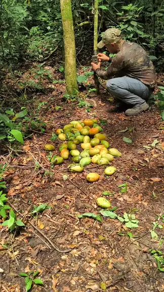 Espalhei bastante mangas na mata e os animais apareceram para se alimentar #animais #natureza