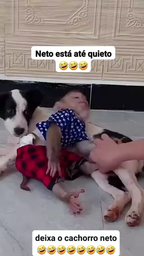 deixa o cachorro queto neto🤣🤣🤣🤣🤣🐒 #engraçado #neto #Macaco #viral #KwaiFamilia