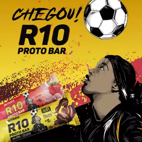 📢Chegou a R10 PROTOBAR. Aprovada pelo eterno campeão @ronaldinho ⚽ ▪Textura macia ▪Hiperproteica ▪Energética ▪Sabor incomparável E para comemorar o lançamento preparamos o SORTEIO de um super kit autografado no da @nutrata. Participe! #r10protobar #barradeproteina #proteina #sorteio