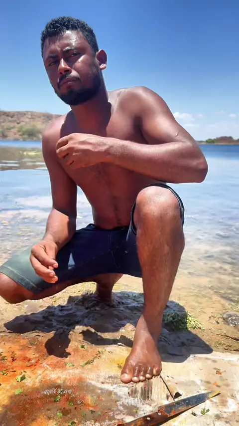 Agora vou estar provando um pedacinho do pirarucu