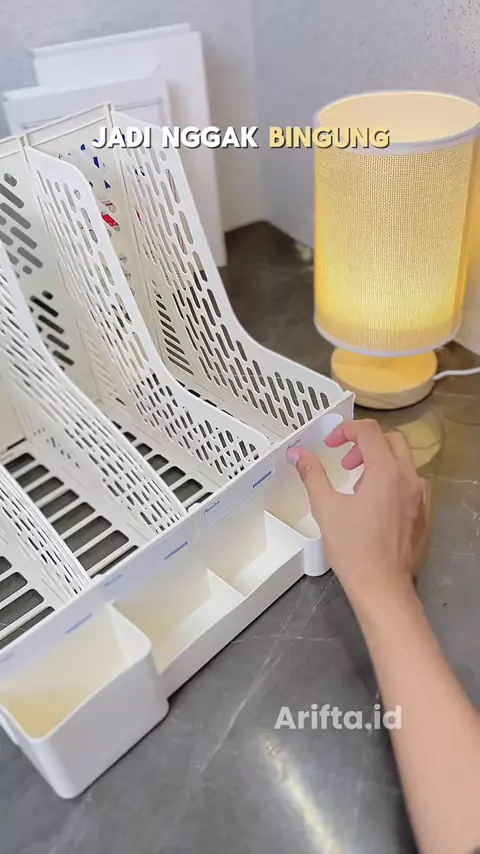 Meja jadi makin rapi dan tertata setelah pakai rak organizer ini #rakorganizer #rakbuku #fileorganizer #rakbukuaesthetic #rakbukuplastik