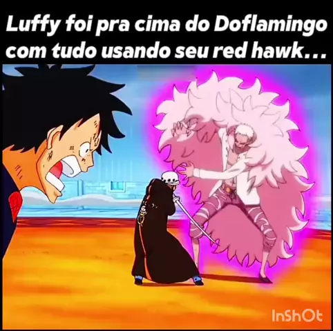 Luffy foi para cima do Doflamingo com tudo usando o seu red hawk...