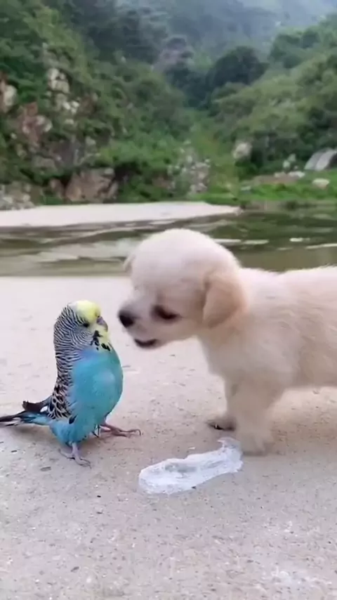 Cachorrinho E Periquito Brincando.ππ