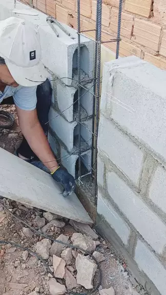 concretando as colunas do muro #casas #obras #muros #carpinteiro #concreto
