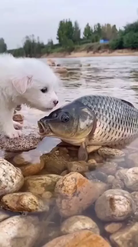 Que amizade mais inusitada! ❤️ #EstrelaDeFamília #cachorro #peixe #animais #cena