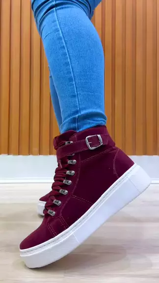 Ainda não superei essa nova cor do Tênis Botinha! ✨ Usaria a cor Marsala? #modafeminina #tenisfeminino #sapatosfemininos #calcadosfemininos #tenisbotinha
