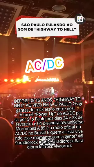 DEPOIS DE 16 ANOS, “HIGHWAY TO HELL” AO VIVO EM SÃO PAULO Os gigantes do rock estão entre nós! ⚡️🎸 A turnê “Power Up” do AC/DC passa por São Paulo nos dias 24 e 28 de fevereiro e 04 de março no estádio Morumbis! A 89 é a rádio oficial do AC/DC no Brasil! E quem aí está vivendo esse momento com a gente? #89aradiorock #ACDC #radiorock #VivaORock #rock