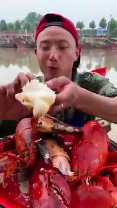 pescador chinês cozinhando e comendo mariscos fresco