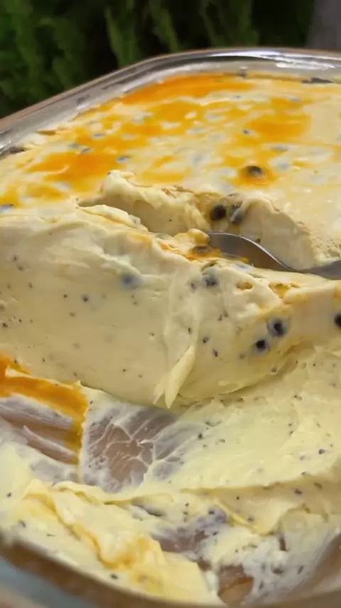 mousse de maracujá , com ganache de chocolate branco.