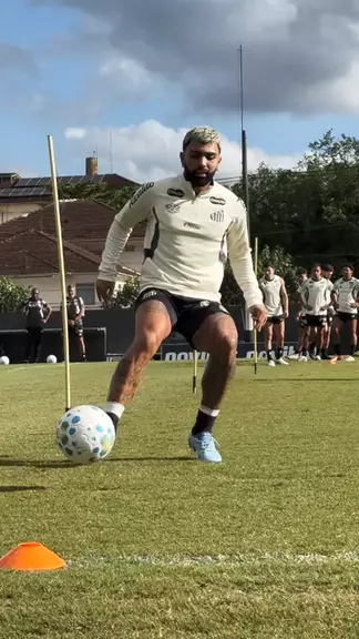 Iniciando o aquecimento pro treino! πββοΈβ½οΈ #Santos #SantosFC #Kwai