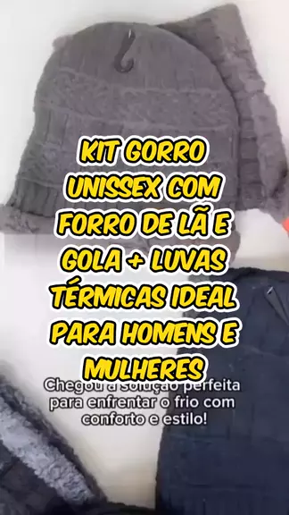 Kit Gorro Unissex com Forro de Lã e Gola + Luvas Térmicas Ideal para Homens e Mulheres #saojoaokwai #acasaedeles #festakwai #maisviews #visualizar