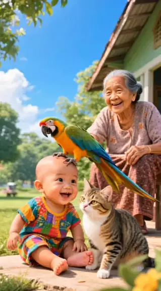 video lucu seorang anak kecil bermain bersama kucing dan burung yang lucu #゚videolucu #anakkecil #kucing #burung #ai