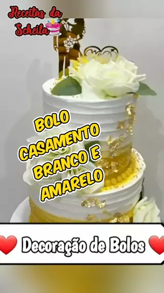Bolo casamento com Decoração branca e amarela. #boloconfeitado