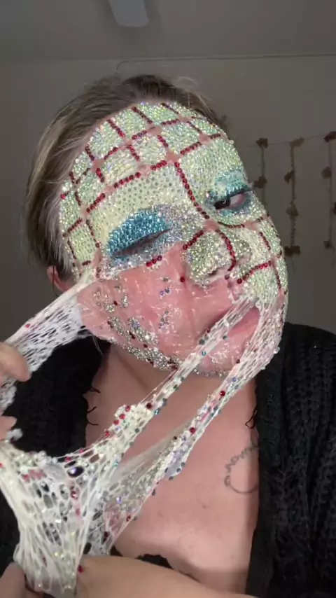 Replying to HOW DID THAT HAPPEN #makeuppeel#makeupremoval#latexpeel#latexremoval#asmrmakeup#asmrmakeupremoval#rhinestonemakeup#pinhead#hellraiser#halloweenmakeup