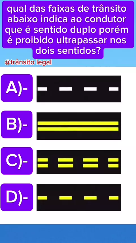 qual das faixas de trânsito divide o fluxo de veículo e proíbe a ultrapassagem nos dois sentidos #habilitação #motorista #trânsito