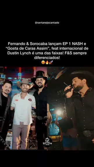 Fernando & Sorocaba lançaram o EP 1 NASH com músicas muito boas e diferentes das que estão atualmente no mercado e dentre elas está “Gosta de Caras Assim”, feat internacional com o Dustin Lynch , ficou top demais! 😍😍🎶 SOBRE O EP: São 4 faixas no total: - Gosta de Caras Assim feat. Dustin Lynch - Arena lotada - Livin’ On Love / Amarillo By Morning / My Maria - Summer Miracle (inédita em inglês, composição do Sorocaba) Bora ouvir?! 😍🎶 #sertanejo #musica #fernandoesorocaba #gostadeca