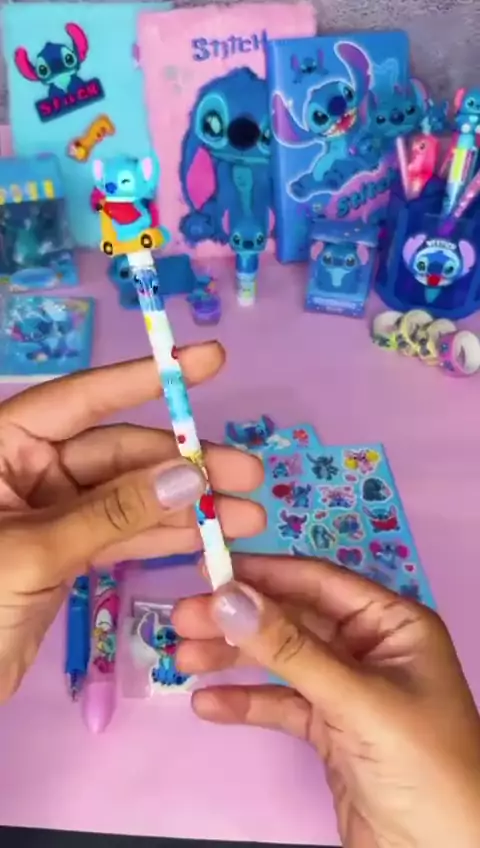 Kit Stitch Papelaria Fofa Kawaii 10 Itens Presente Criativo Para Menina Caneta Lápis Borracha Adesivo Caderninho #maisviews