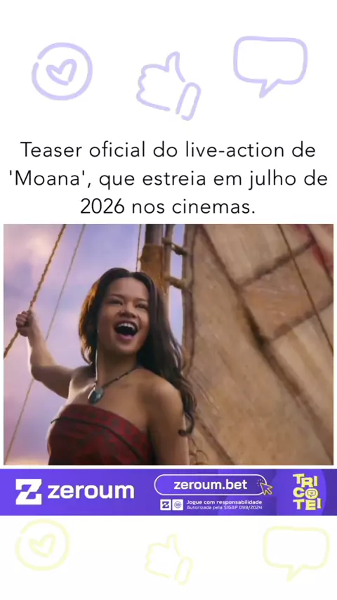 A Walt Disney Studios divulgou o primeiro teaser trailer oficial do remake em live-action de ‘Moana’, estrelado por Dwayne Johnson e Catherine Lagaʻaia. O filme tem estreia marcada para o dia 10 de julho de 2026. 📽️ Imagem/Reprodução | Internet
