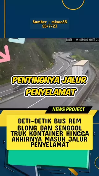 DETI-DETIK BUS REM BLONG DAN SENGGOL TRUK KONTAINER HINGGA AKHIRNYA MASUK JALUR PENYELAMAT #info #jalantol #update #berita #bus