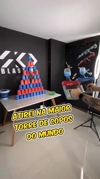 Atirei na maior torre de copos do mundo 🤯 #arminhadegel #armadegel #skdblaster #gelblaster #gungel