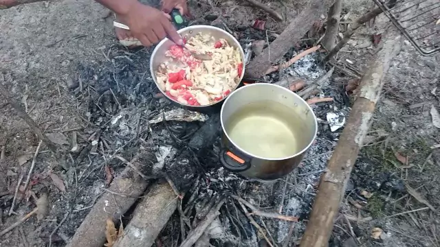 Tá chegando a hora do almoço na floresta. Cardápio de hoje: peixe, cebola, tomate. Tudo refogado na manteiga. Pra fechar, uma farinha regional. Não adianta procurar por aí. Esse menu só tem no mato.