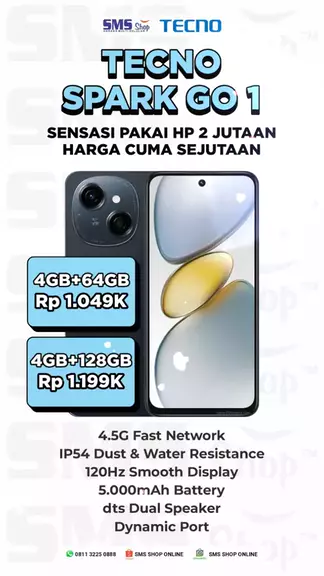 #SmsShop #TecnoSparkGO1 #HpMurah #HpSejutaan #InfoGadget