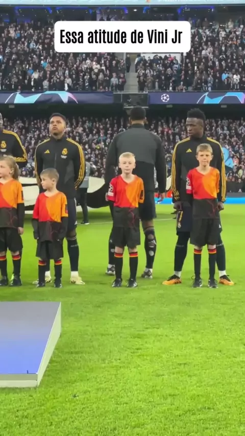 Espontaneamente Vini Jr entrega seu casaco para o menino, bela atitude #vinijr #realmadrid #bellingham #ColunistaEsportivo #esporte