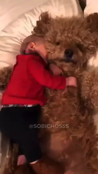Amor felpudo: este bebê encontrou o melhor travesseiro com seu amigo peludo! 🍼🐾 #fy #fyp #kwai #viral #pets