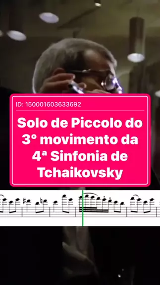 O solo de Piccolo no 3º movimento da 4ª Sinfonia de Tchaikovsky, conhecido como “Pizzicato Ostinato”, é uma das partes mais desafiadoras e icônicas para o instrumento no repertório orquestral. Este movimento é caracterizado por um tema leve e caprichoso, com a seção de cordas tocando pizzicato ao longo de todo o movimento, criando uma textura única que serve de pano de fundo para o solo do piccolo. O solo em si é uma exibição de agilidade e precisão.