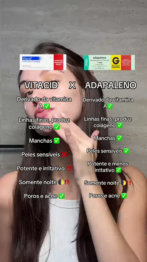 Resumindo: ambos tem funções muito parecidas porém o adapaleno é mais fácil de ser tolerado, principalmente para quem tem a pele sensível ou está iniciando o mundo dos ácidos agora. Ambos são medicamentos e devem ser prescritos pelo seu dermato! Já usaram algum? #viral #skincare #vitacid #acne #skintok #dermato #creatorsearchinsights