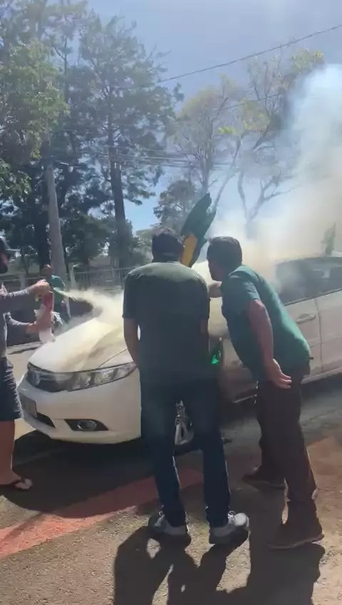 Homens jogam coquetel molotov em carros em , São Borja Homens em motos jogaram coquetéis molotov em carros que estavam em frente 2RCMEC, onde está ocorrendo a manifestação dos apoiadores do Presidente Jair Bolsonaro. Tarde desta quarta-feira. De acordo com informações, dois carros foram atingidos, e alguns tiveram vidros quebrados. Brigada militar e corpo de bombeiros atendem a ocorrência. Ocorrência em andamento