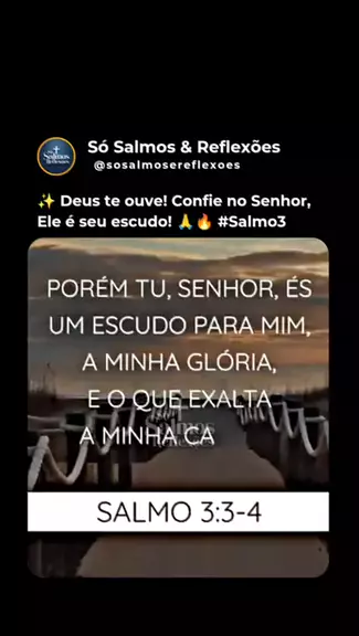 Ele é seu escudo! 🙏🔥 #Salmo3 Legenda: 📖 "Porém, tu, Senhor, és um escudo para mim, a minha glória e o que exalta a minha cabeça." (Salmo 3:3-4) Não importa o que você esteja enfrentando, Deus ouve o seu clamor e te sustenta! Confie nEle! 💛🙌 ⚡ Marque alguém que precisa dessa palavra! ✨ 🔄 Compartilhe essa mensagem de fé! #DeusÉFiel #Fé #VersículoDoDia #PalavraDeDeus
