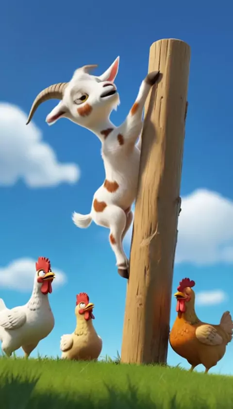 The Crazy Goat: Pole-Climbing Adventure #Funny #animation