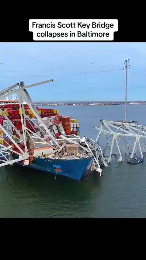 Imagens de close-up: Francis Scott Key Bridge desaba em Baltimore após ser atingido por um navio porta-contêineres gigante, vista aérea! #BaltimoreCollapse #FrancisScottKeyBridge